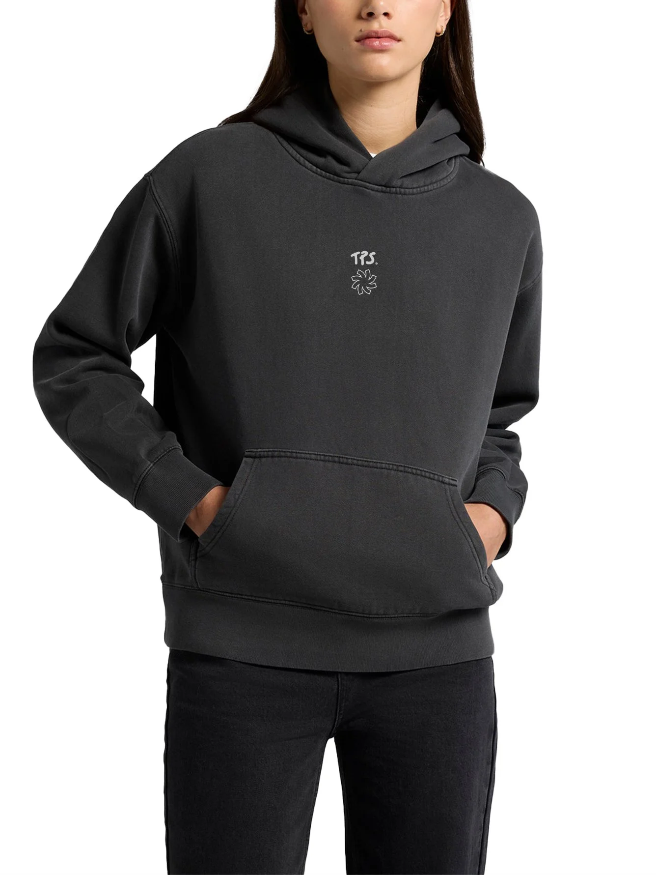 Experience the TPS Relax Faded Hood, offering a relaxed fit in mid-weight 320 GSM fabric—80% cotton and 20% recycled polyester fleece. Features include a pullover style, drop shoulder, kangaroo pocket, self-fabric lined hood, and garment dyed finish.